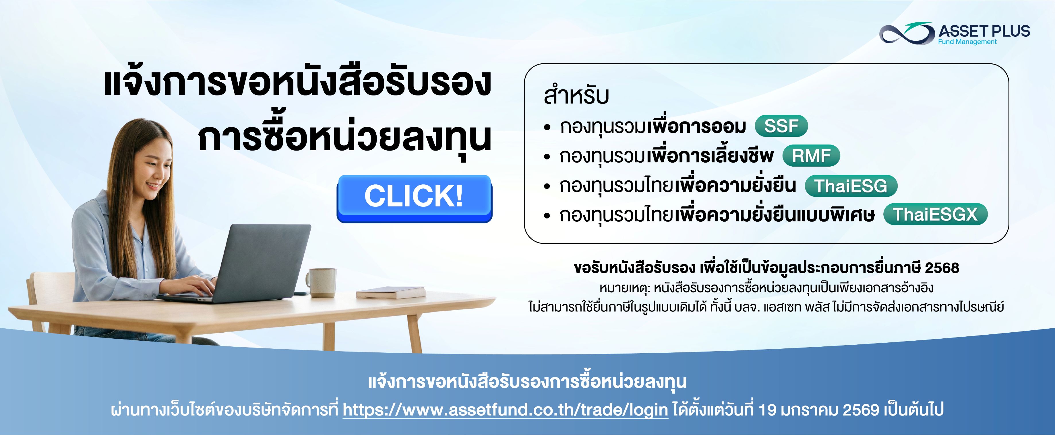 พบกับบูธ บลจ.แอสเซท พลัส ได้ที่การไ...